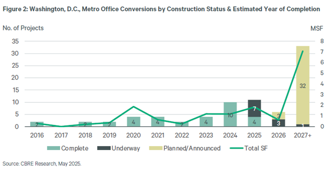 “Despite the downturn, job openings remained stable, single-family housing permits rose, and D.C.’s multifamily market showed strength, highlighting pockets of resilience.”  – CBRE Research September 18, 2025
